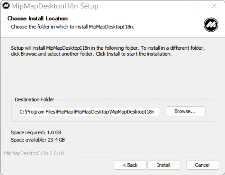 Haga doble clic en el paquete de instalación del software (MipMap Desktop.exe), seleccione el objetivo de instalación según sus necesidades, haga clic en Siguiente, elija el directorio de instalación, y haga clic en Instalar para completar la instalación de MipMap Desktop.