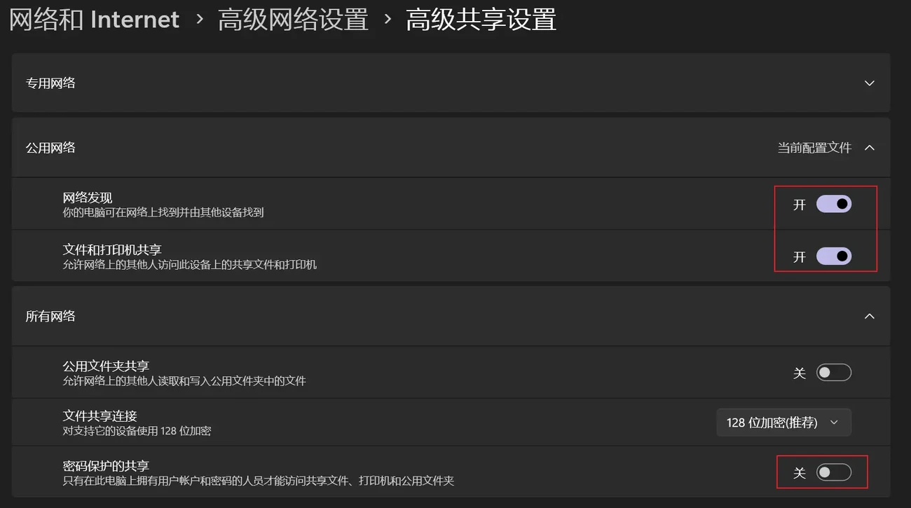 Откройте "Расширенные настройки общего доступа" в системе Windows. В настройках включите "Сетевое обнаружение" и "Общий доступ к файлам и принтерам".