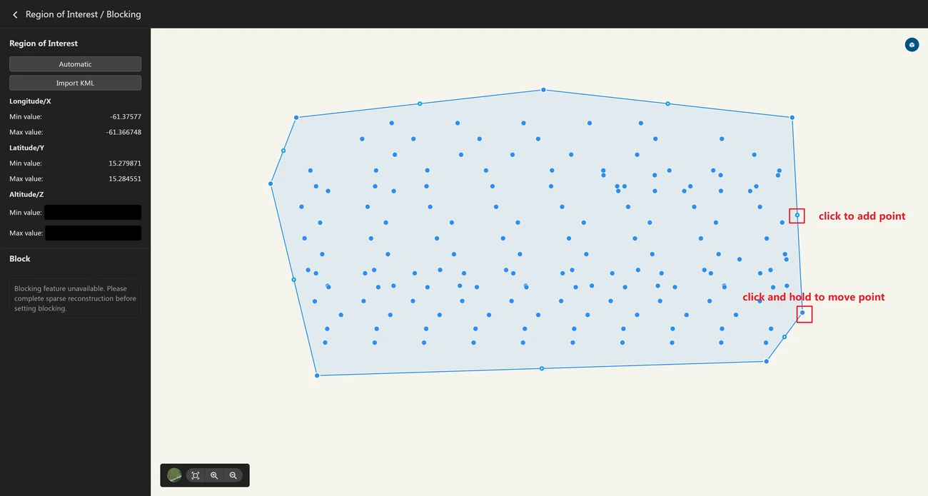 Для лучшего ручного редактирования области интереса рекомендуется, чтобы пользователи нажали для переключения на спутниковую базовую карту.
