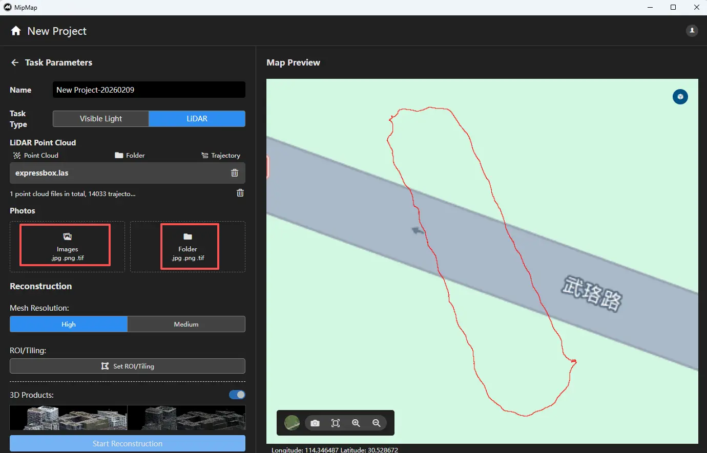 Sol taraftaki görev parametrelerinde fotoğraf verilerini dosya veya klasör bazında içe aktarabilirsiniz.