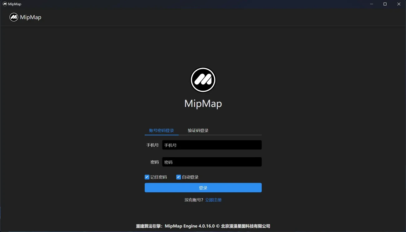 安装好软件后,双击软件(桌面快捷方式),进入MipMap Desktop登录界面。
