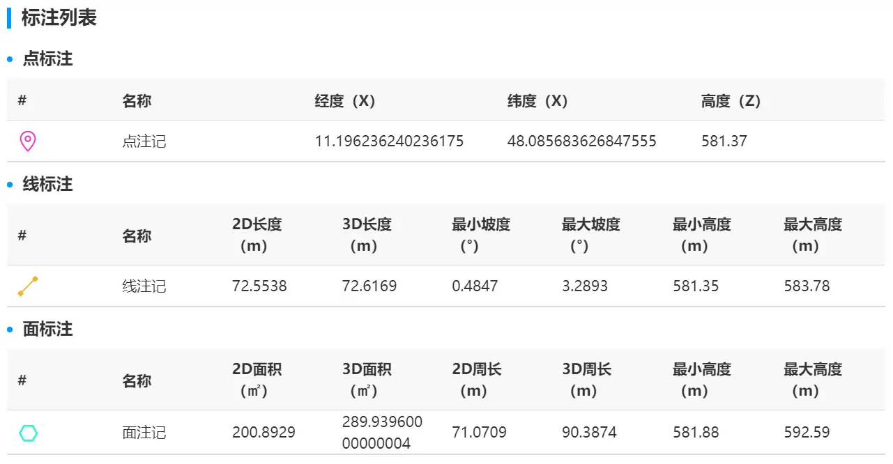 8. 质量报告8.2 标注质量报告本页总览8.2 标注质量报告在成果报告页面左侧可以切换到标注报告,点击右上角的按钮可以下载pdf格式的报告文件,标注报告主要包括以下几部分内容: 任务概览 主要包括任务的缩略图和基本信息 标注列表 用表格的形式列表点、线、面三种标注的列表和详细信息。 标注详情 详细列出每一个标注的具体数据和地图截图。