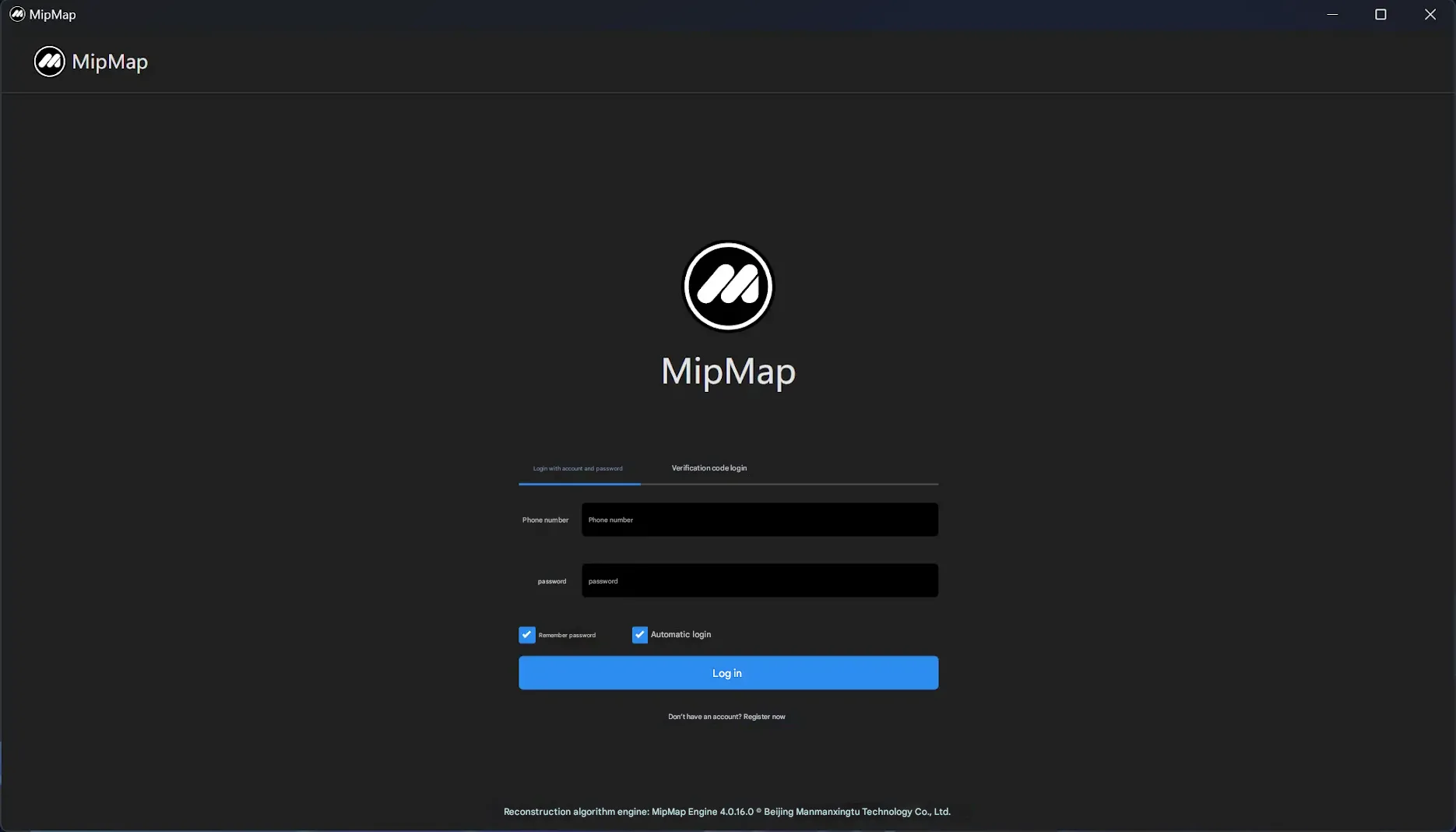 Après avoir installé le logiciel, double-cliquez sur le logiciel (raccourci du bureau) pour accéder à l'interface de connexion MipMap Desktop.