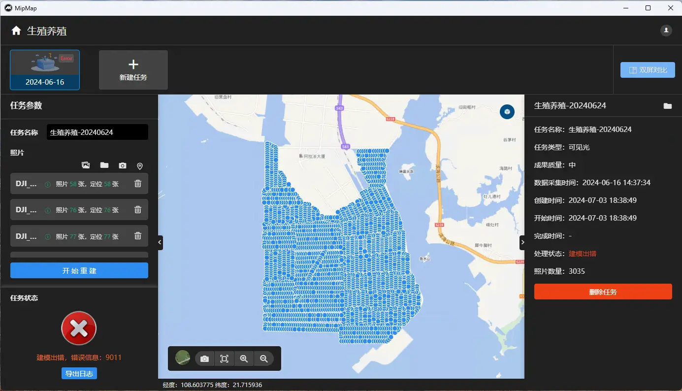 如果任务重建失败则会显示建模出错,可以在任务目录获取日志文件并向技术人员寻求帮助。